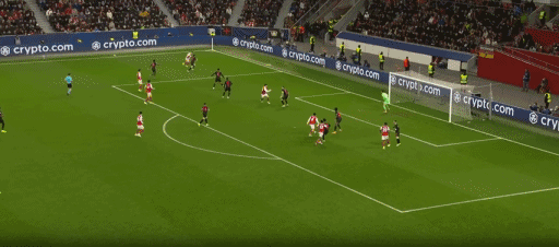 第13分钟,阿森纳球员加布里埃尔被抢断,赖斯及时回防,破坏了勒沃库森的反击。